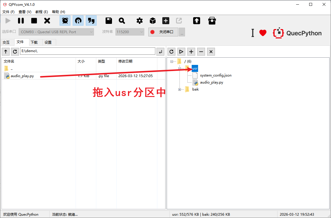 简单说,就是用?QEM820MA-CN?开发板,配合 QuecPython 的音频功能,做一个简易的“录音笔 + 喇叭”。