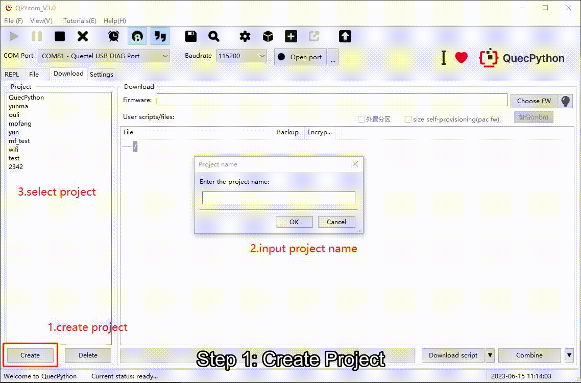 QuecPython固件 固件 必需,根据模组型号在下载专区进行下载