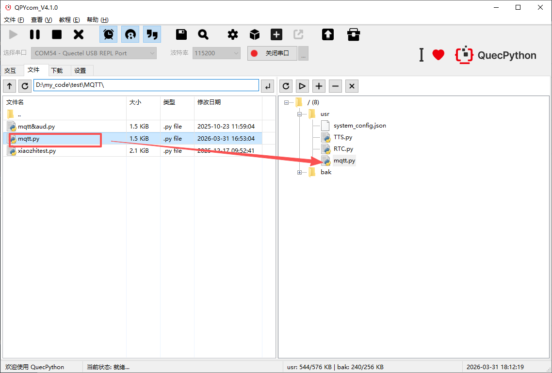 5. 参考此章节,执行主程序文件?mqtt.py。