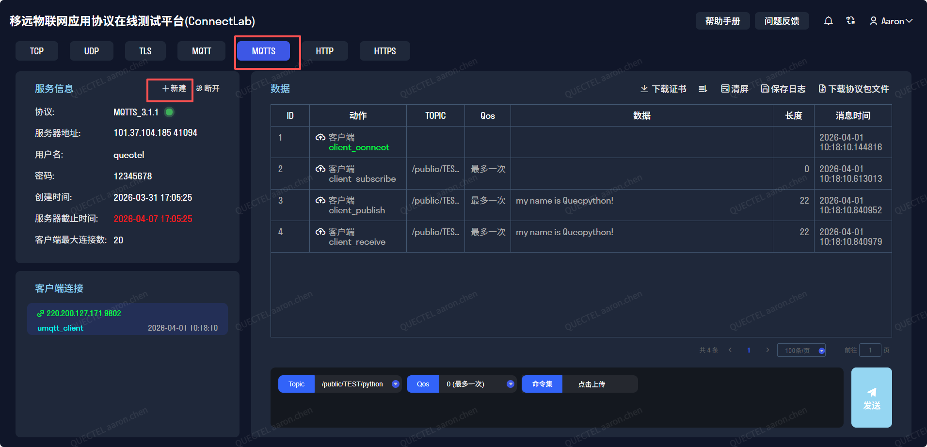 ? ? ? ? c.publish("/public/TEST/python", "my name is Quecpython!")