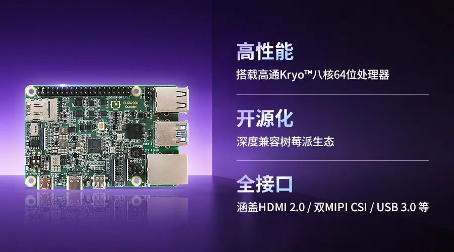 PI-SC200U延续开源、高效、灵活基因,提供强大处理能力与高度可扩展性。其搭载高通SM6115平台及Kryo?八核64位处理器(2.0GHz高性能核+1.8GHz低功耗核),配合Adreno? 610 GPU及4GB LPDDR4X+64GB eMMC存储,为工业自动化等多任务并发与AI推理提供强劲算力。其深度兼容树莓派生态,开发者可无缝复用全球开源资源,大幅降低迁移成本。